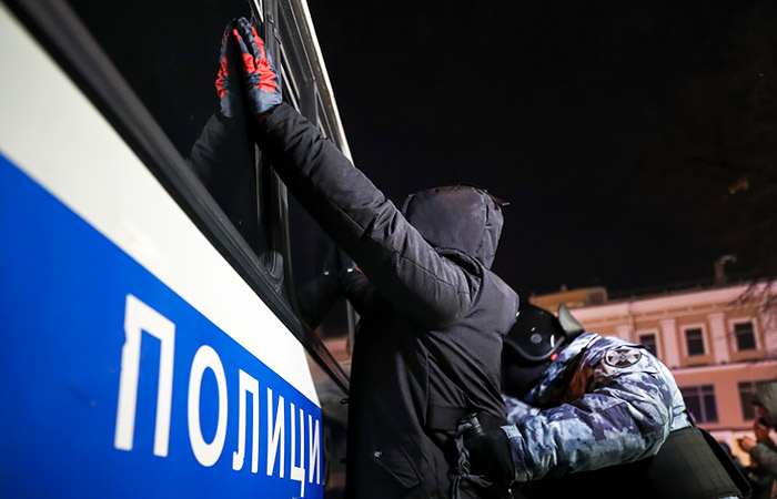 Ранее сообщалось, что сотрудники правоохранительных за полночь пресекли несанкционированную акцию в центре Москвы, на которую вышли сторонники оппозиционера Алексея Навального, получившего во вторник реальный срок заключения вместо условного.