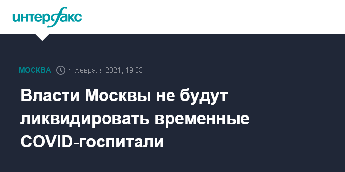 Москва. 4 февраля. INTERFAX.RU - В Москве планируют сохранить развернутые в рамках борьбы с пандемией COVID-19 временные госпитали, заявил мэр столицы Сергей Собянин.