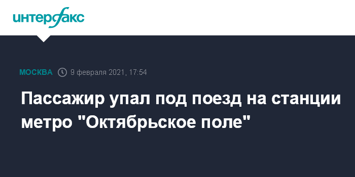 "Около 17:35 пассажир по неизвестным причинам упал под прибывающий поезд. Для его извлечения снято напряжение контактного рельса на станции метро "Октябрьское поле", - сказал собеседник агентства.