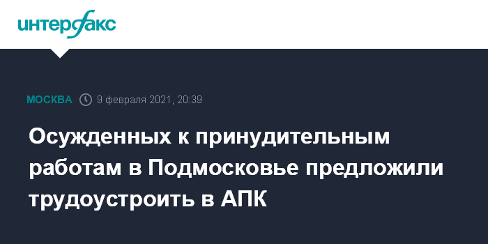 Москва. 9 февраля. INTERFAX.RU - Руководители крупных сельскохозяйственных предприятий Подмосковья отмечают нехватку работников и предлагают привлекать на вакантные места осужденных к принудительным работам. Об этом сообщили в пресс-службе Главного управления региональной безопасности Московской области.