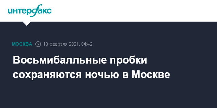 Восьмибалльные пробки сохраняются ночью в Москве