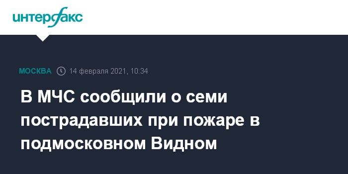 Москва. 14 февраля. INTERFAX.RU - Спасатели сообщили о семи пострадавших при пожаре в городе Видном в Московской области.