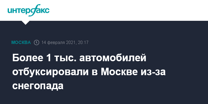 Москва. 14 февраля. INTERFAX.RU - В Москве за три дня снегопада было отбуксировано более тысячи автомобилей, сообщает столичный Департамент транспорта в своем телеграм-канале.