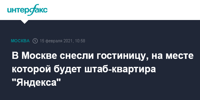 В Москве снесли гостиницу, на месте которой будет штаб-квартира "Яндекса"