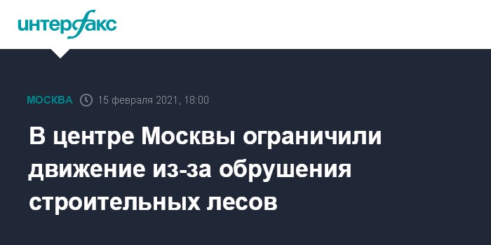 Москва. 15 февраля. INTERFAX.RU - В Москве перекрыли движение по некоторым улицам, расположенным вблизи здания, с которого в понедельник обрушились строительные леса, сообщает департамент транспорта и развития дорожно-транспортной инфраструктуры столицы.