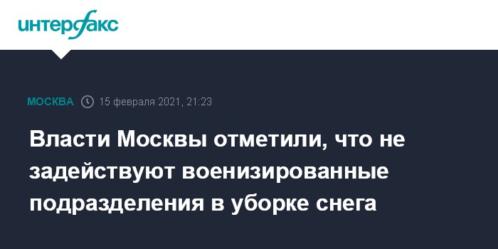 Власти Москвы отметили, что не задействуют военизированные подразделения в уборке снега