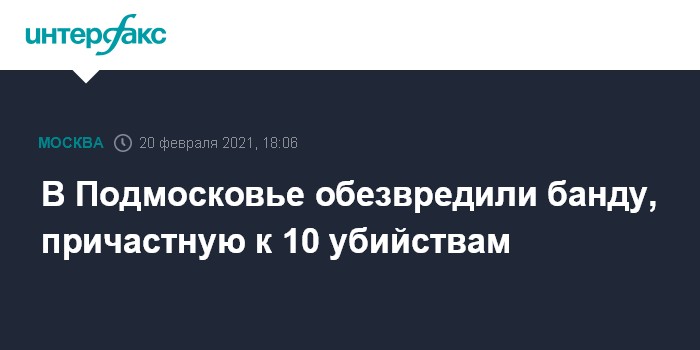 Москва. 20 февраля. INTERFAX.RU - Сотрудники правоохранительных органов задержали восьмерых участников преступной банды, подозреваемых в серии убийств в период с 2000 по 2019 годы. Об этом сообщила "Интерфаксу" официальный представитель МВД России Ирина Волк.