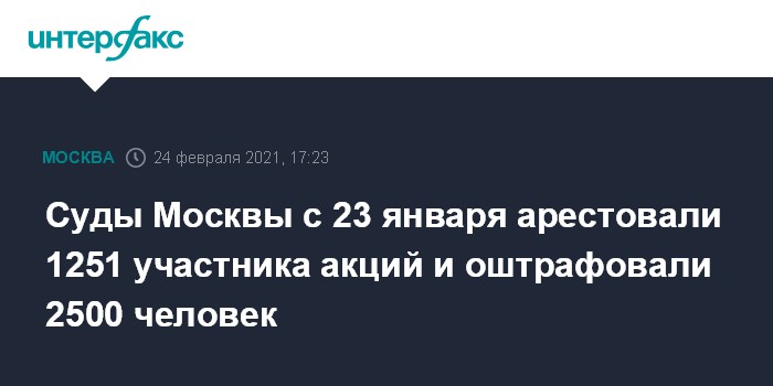 Суды Москвы с 23 января арестовали 1251 участника акций и оштрафовали 2500 человек