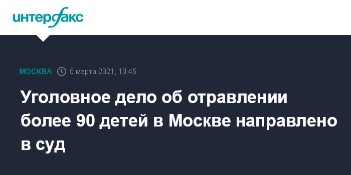 Уголовное дело об отравлении более 90 детей в Москве направлено в суд