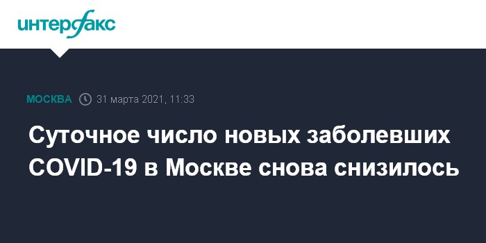 Москва. 31 марта. INTERFAX.RU - Еще 1 286 новых случаев коронавируса зафиксировали в Москве за сутки, следует из данных оперативного штаба по контролю ситуации с COVID-19. Накануне сообщалось о 1 291 случае инфицирования. Таким образом, заболеваемость среди жителей столицы незначительно снизилась.