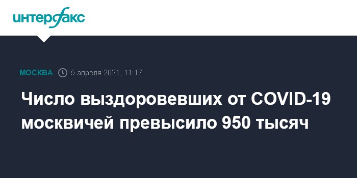 Число выздоровевших от COVID-19 москвичей превысило 950 тысяч