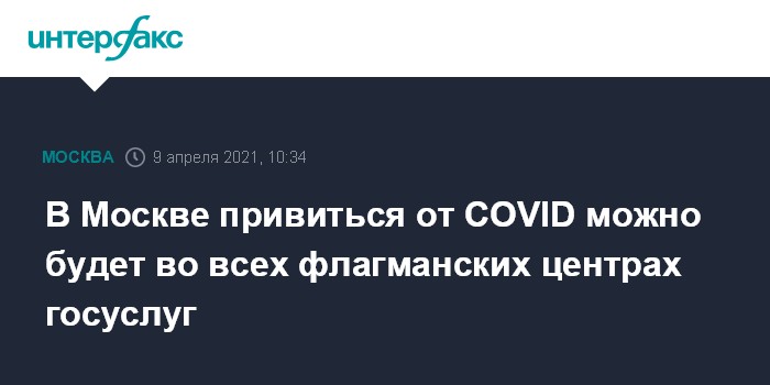 "Флагманские центры "Мои Документы" являются ключевыми точками притяжения горожан. (...) Начиная со следующего понедельника, 12 апреля, сделать прививку от COVID-19 можно будет во всех шести флагманских центрах", - сказала заммэра журналистам в пятницу.