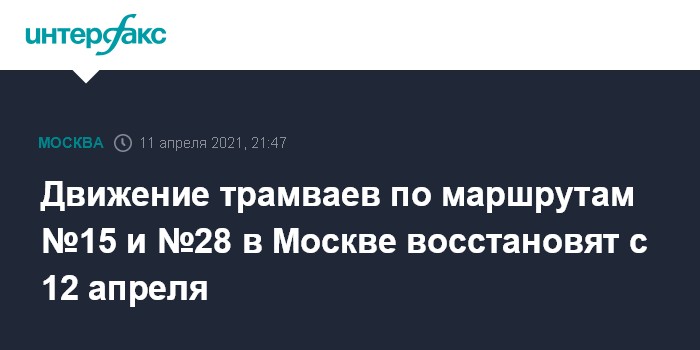 Движение трамваев по маршрутам №15 и №28 в Москве восстановят с 12 апреля