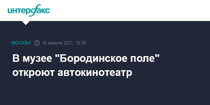 Москва. 16 апреля. INTERFAX.RU - В Можайском округе Подмосковья на парковке у музея "Бородинское поле" открывается автокинотеатр, первый сеанс пройдет 17 апреля, сообщила пресс-служба администрации муниципалитета.