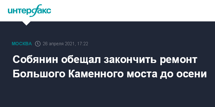 Москва. 26 апреля. INTERFAX.RU - Мэр Москвы Сергей Собянин рассчитывает, что реконструкция Большого Каменного моста закончится досрочно.