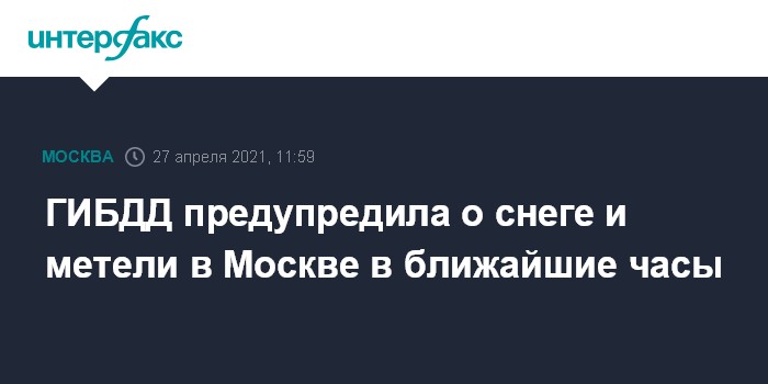 Москва. 27 апреля. INTERFAX.RU - Столичный главк Госавтоинспекции предупредил автомобилистов о начале снегопада и метели в Москве в ближайшие часы. Из-за этого ведомство рекомендовало воздержаться от поездок на личном транспорте.