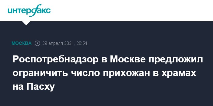 В нем говорится, что управление Роспотребнадзора по Москве ранее в середине апреля направило в адрес руководителей религиозных конфессий "предложения о проведении дополнительных санитарно-противоэпидемических мероприятий, включая ограничение количества находящихся внутри храма прихожан".