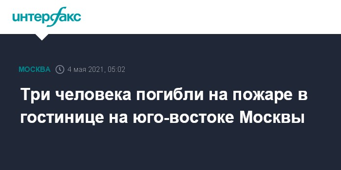 Москва. 4 мая. INTERFAX.RU - В результате пожара в гостинице на юго-востоке Москвы погибли три человека, сообщили журналистам в пресс-службе главка МЧС Москвы.