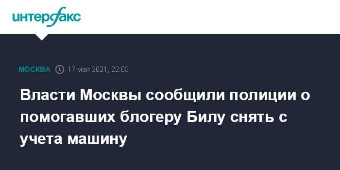 Власти Москвы сообщили полиции о помогавших блогеру Билу снять с учета машину