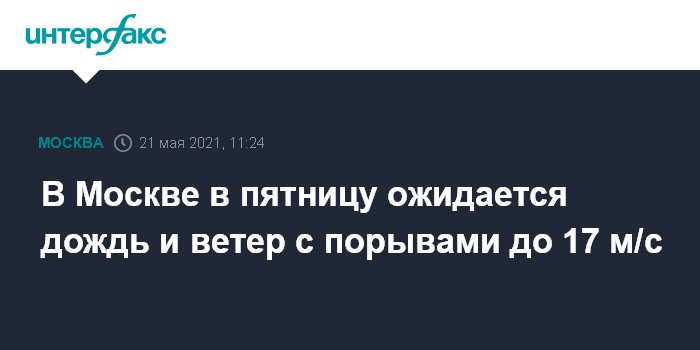 Москва. 21 мая. INTERFAX.RU - Гроза и ветер с порывами до 17 метров в секунду ожидаются в Москве в пятницу вечером. Об этом сообщили в департаменте транспорта и развития дорожно-транспортной инфраструктуры столицы.