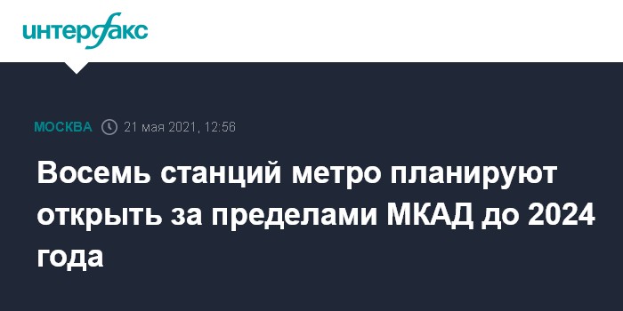 Москва. 21 мая. INTERFAX.RU - Восемь станций метро появится за пределами МКАД до 2024 года, сообщил в пятницу заммэра Москвы по вопросам градостроительной политики и строительства Андрей Бочкарев.