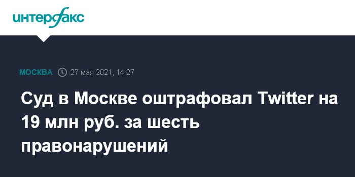 Суд в Москве оштрафовал Twitter на 19 млн руб. за шесть правонарушений