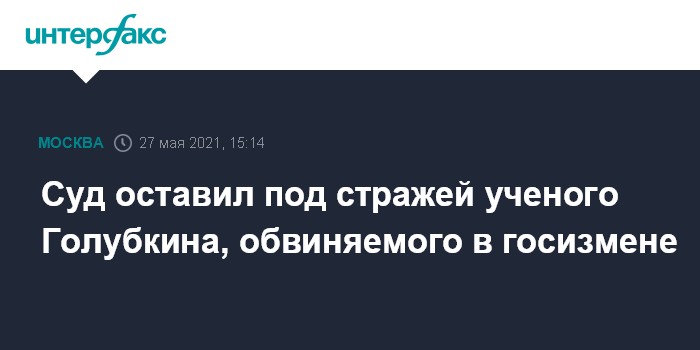 Москва. 27 мая. INTERFAX.RU - Московский городской суд признал законным арест 70-летнего ученого Валерия Голубкина, обвиняемого в государственной измене.