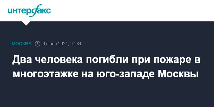 Москва. 6 июня. INTERFAX.RU - Два человека погибли, один пострадал при пожаре в 11-этажном жилом доме на Университетском проспекте, д. 5 (ЮЗАО), сообщает в воскресенье столичный главк МЧС.