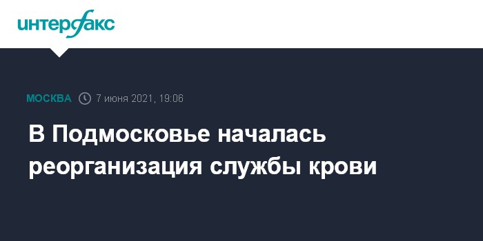 Москва. 7 июня. INTERFAX.RU - Реорганизация службы крови началась в Московской области. Соответствующий документ опубликован на сайте министерства здравоохранения Московской области, сообщает пресс-служба ведомства.