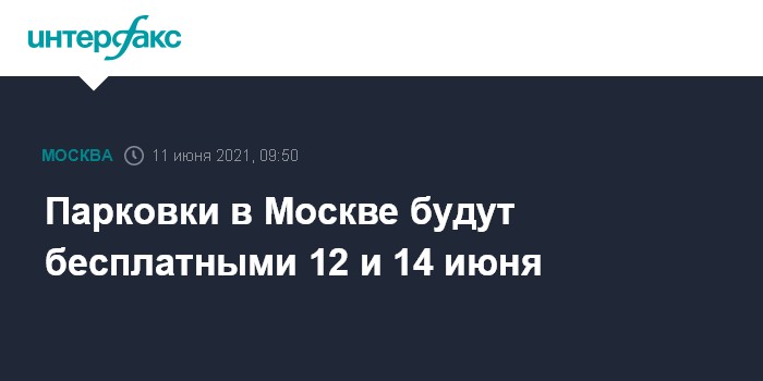 Москва. 11 июня. INTERFAX.RU - В Москве в субботу, 12 июня, и в понедельник, 14 июня, парковки на всех улицах будут бесплатными, сообщил городской Департамент транспорта.