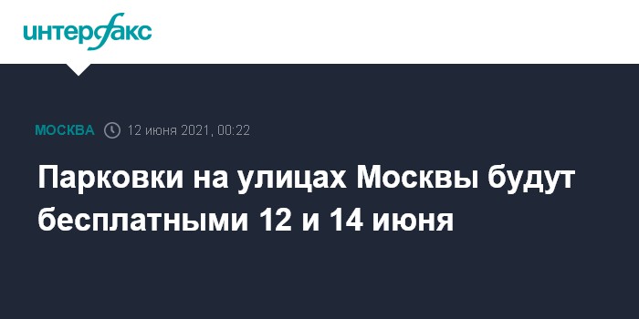 Москва. 12 июня. INTERFAX.RU - В субботу, 12 июня, и в понедельник, 14 июня, парковки на всех улицах Москвы будут бесплатными, сообщили в департаменте транспорта и развития дорожно-транспортной инфраструктуры столицы.