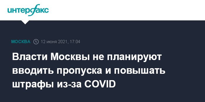 Власти Москвы не планируют вводить пропуска и повышать штрафы из-за COVID