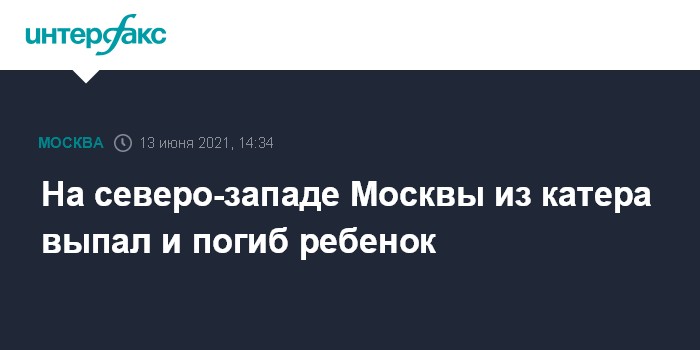 Москва. 13 июня. INTERFAX.RU - Маленький мальчик погиб, выпав из катера на северо-западе Москвы.