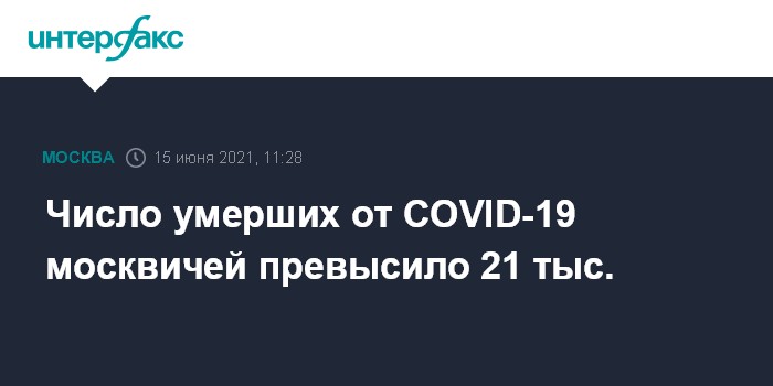 Число умерших от COVID-19 москвичей превысило 21 тыс.