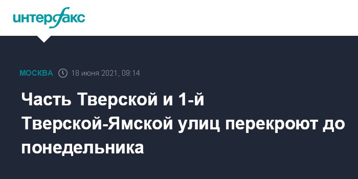 Часть Тверской и 1-й Тверской-Ямской улиц перекроют до понедельника