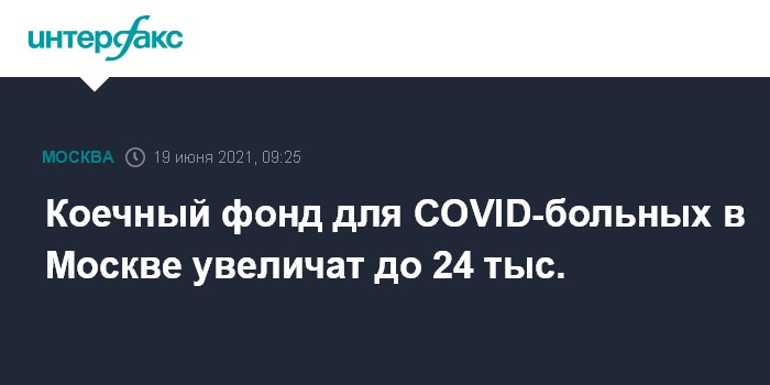 Москва. 19 июня. INTERFAX.RU - Коечный фонд для лечения пациентов с коронавирусом в столице в ближайшие две недели нарастят до 24 тыс., сообщила журналистам заммэра Москвы по вопросам социального развития Анастасия Ракова.