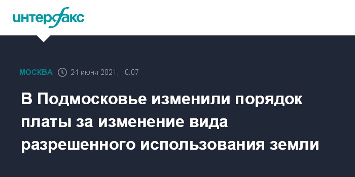 Москва. 24 июня. INTERFAX.RU - Новый порядок платы за изменение вида разрешенного использования земли введен в Московской области: платежи будут выставляться до изменения характеристик в Росреестре. Об этом сообщает пресс-служба министерства имущественных отношений Подмосковья.