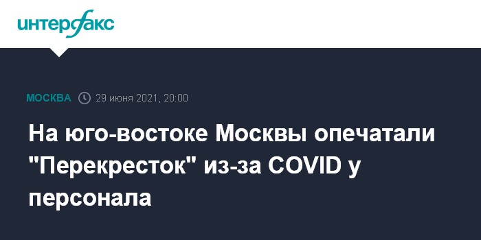Москва. 29 июня. INTERFAX.RU - У сотрудников магазина "Перекресток" на улице Братиславская в Москве нашли COVID-19, Роспотребнадзор опечатал заведение. Об этом сообщил специалист-эксперт территориального отдела столичного управления службы в Юго-Восточном административном округе Фарис Лабаш.