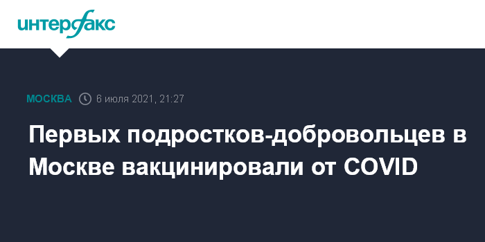 Москва. 6 июля. INTERFAX.RU - Первые 11 подростков, принимающих участие в исследованиях вакцины против COVID-19 "Спутник V" в столице, получили компонент препарата, осложнений у них не фиксируют, сказал главный педиатр департамента здравоохранения Москвы, главврач детской городской клинической больницы имени Башляевой Исмаил Османов.