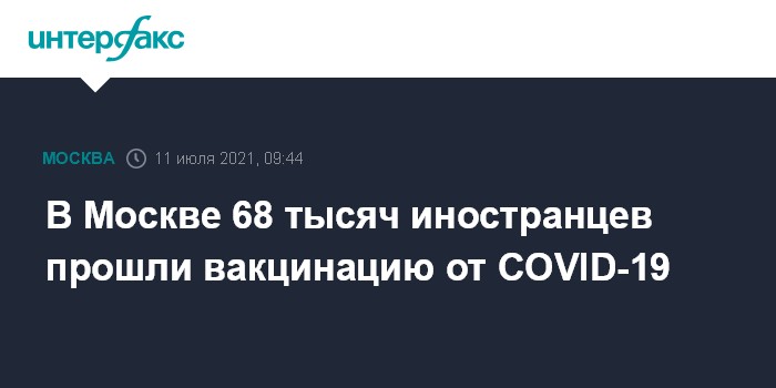 Москва. 11 июля. INTERFAX.RU - Прививку от коронавируса в Москве с начала кампании по вакцинации мигрантов сделали 68 тысяч иностранцев, сообщили журналистам в оперативном штабе по контролю и мониторингу ситуации с коронавирусом в столице.