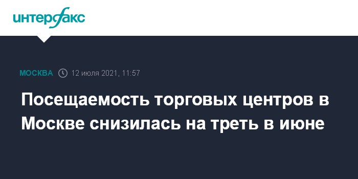 Москва. 12 июля. INTERFAX.RU - Посещаемость столичных торговых центров снизилась в июне этого года на 25-35% по сравнению с июнем 2019-го, а доходы арендодателей упали на 15-20% по сравнению с допандемийным периодом, сообщила пресс-служба Российского совета торговых центров (РСТЦ).