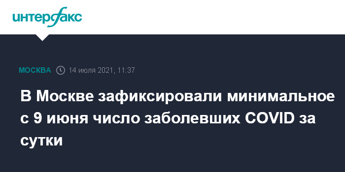 Москва. 14 июля. INTERFAX.RU - Более 3,9 тысячи случаев заболевания коронавирусом зафиксировали в Москве за сутки, это минимальное значения с 9 июня, следует из данных оперативного штаба по контролю ситуации с COVID-19.