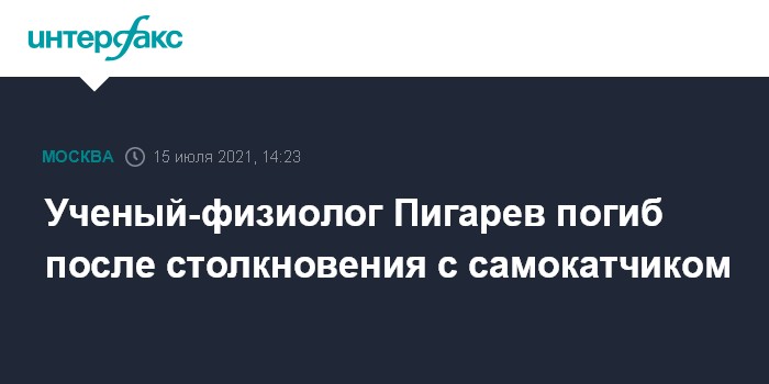 Москва. 15 июля. INTERFAX.RU - Столичные следователи начали проверку по факту смерти 80-летнего ученого-физиолога Ивана Пигарева, погибшего после столкновения его велосипеда с самокатом в Москве.