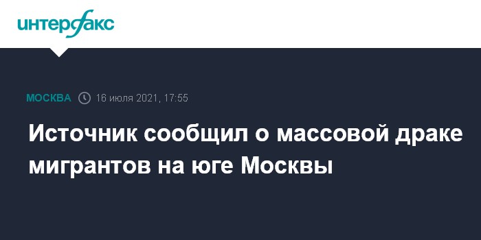 Москва. 16 июля. INTERFAX.RU - Сотрудники правоохранительных органов в Москве проверяют информацию о массовой драке мигрантов на юге столицы, сообщил "Интерфаксу" информированный источник.