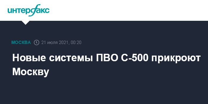 Москва. 21 июля. INTERFAX.RU - Зенитные ракетные системы нового поколения С-500 "Прометей" поступят на вооружение армии, которая обеспечивает противовоздушную и противоракетную оборону (ПВО-ПРО) Москвы, сообщили российские военные.