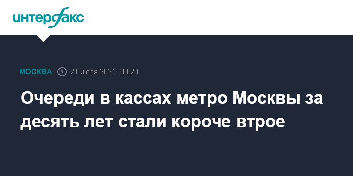 Москва. 21 июля. INTERFAX.RU - В московском метрополитене с 2010 года очереди в кассу стали короче в 3,3 раза, теперь в ней приходится стоять в среднем 1,5 минуты меньше вместо 5, заявил городской департамент транспорта. Это связали с развитием бесконтактных способов оплаты за проезд и оплаты за безналичные.