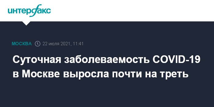 Москва. 22 июля. INTERFAX.RU - Более 4,2 тыс. случаев заболевания коронавирусом зафиксировали в Москве за сутки, это почти на 32% больше, чем днем ранее, следует из данных оперативного штаба по контролю ситуации с COVID-19.
