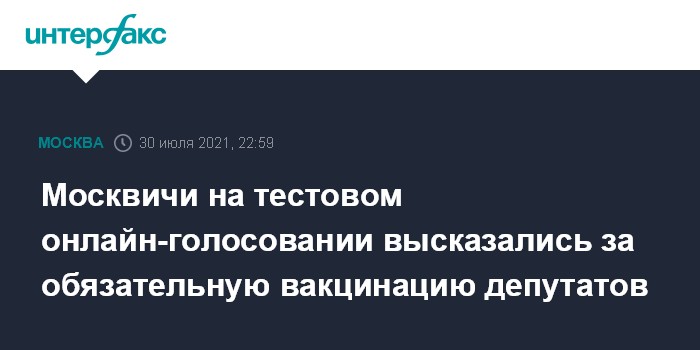 Москвичи на тестовом онлайн-голосовании высказались за обязательную вакцинацию депутатов