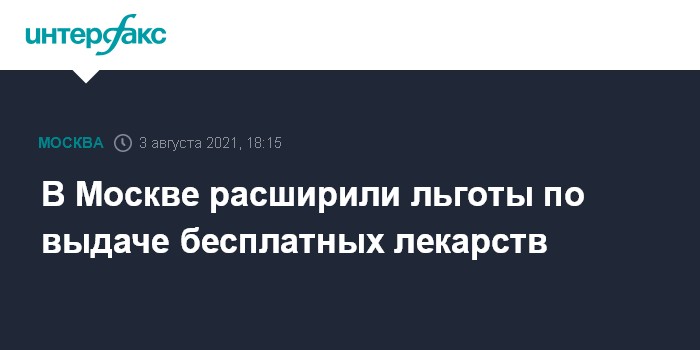 В Москве расширили льготы по выдаче бесплатных лекарств