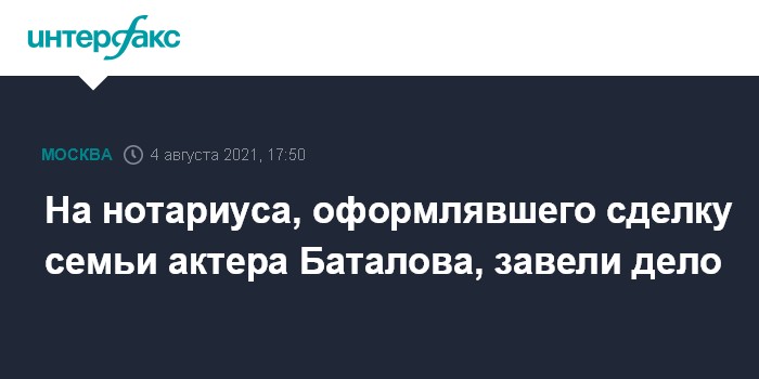 Ранее сообщалось, что прокуратура Москвы поставила на контроль результаты расследования уголовного дела, возбужденного по факту мошенничества с недвижимостью семьи актера Баталова, по ч. 4 ст. 159 УК РФ.